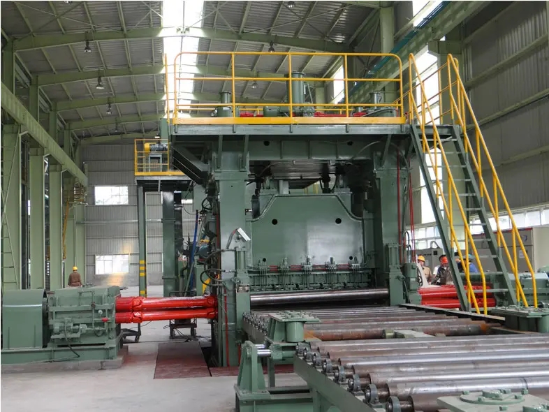 2、根據(jù)載荷的特點,選用的工作輥輥距和輥徑較大,機器剛性好,矯平精度有保證??紤]板厚整平。該輥式矯平機工作輥軸頸均采用精密軋機專用軸承,工作輥摩擦阻力小,防滑狀況大大改善,可矯直較薄的鋼板。制輥裝置采用德國SMS公司技術(shù),具有較大的輥徑與輥距比,提高了工作輥的強度,減少了盲區(qū)糾偏,提高了工件的矯平精度。滾子軸頸均采用新型軋機專用滾動軸承,使用壽命5至10年。工作輥軸承聯(lián)軸器零件的選型、結(jié)構(gòu)設(shè)計和制造應(yīng)保證可靠性和耐用性,并充分考慮工作輥的軸向、徑向載荷和變形。