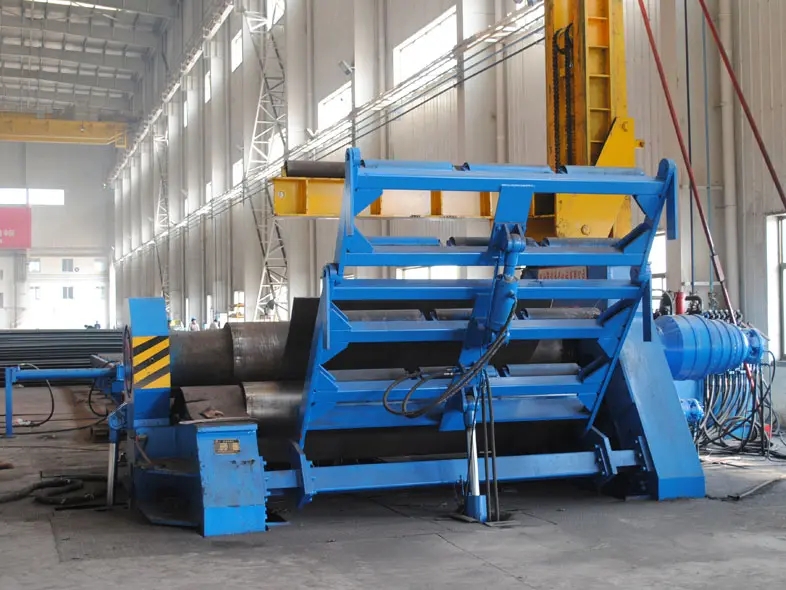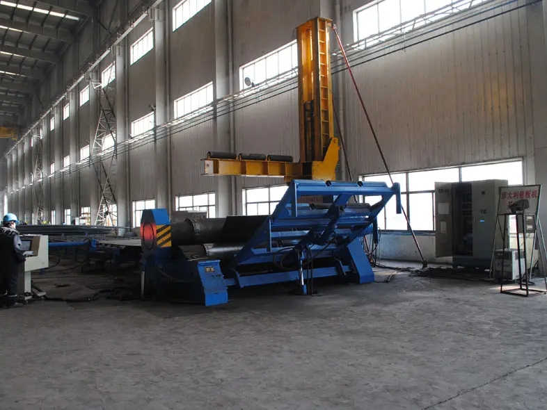 5. 四輥卷板機(jī)預(yù)彎曲:將前后輥調(diào)整到工作所需的相應(yīng)位置,并啟動上輥進(jìn)行成型和彎曲。